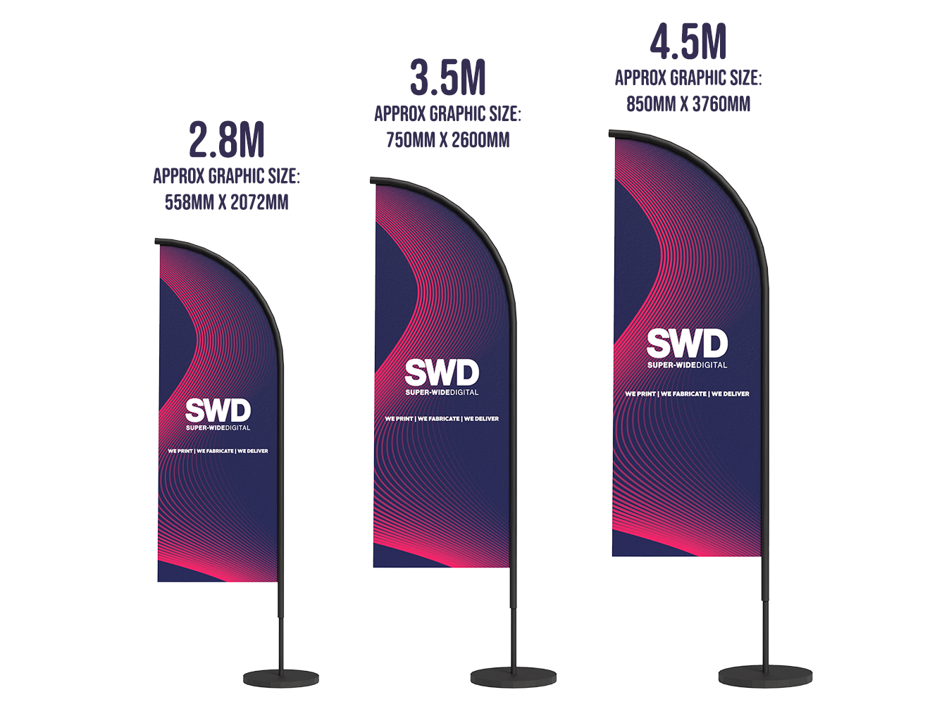 A variety of pole sizes and bases are offered to cater to different needs. Flags come in various sizes to suit requirements, with bases suitable for hard and soft ground conditions.